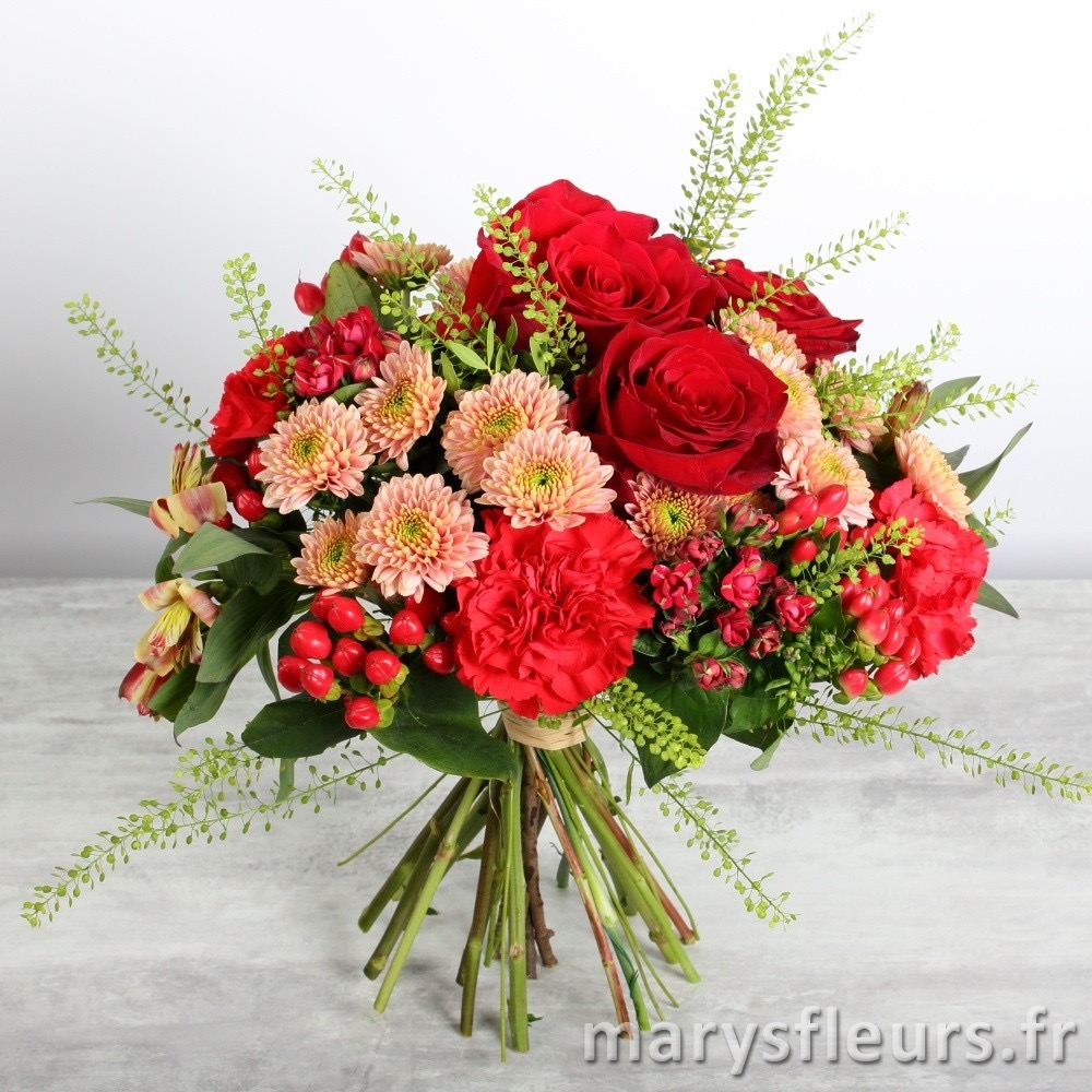 Bouquet légèrement destructuré dans un camaïeu de rouge