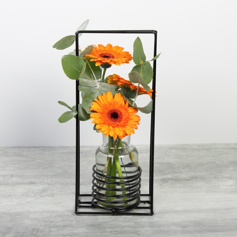 Soliflor avec 3 germinis orange et eucalyptus